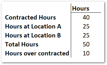 - With the setting enabled, the calculation will recognise that across both locations, the employee has worked a total of 50 hours and is due 10 hours overtime