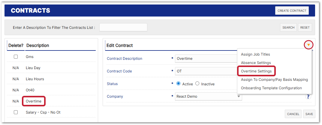 If the overtime calculations apply to only a small number of job titles that have the same contract assigned, specific job titles can be assigned