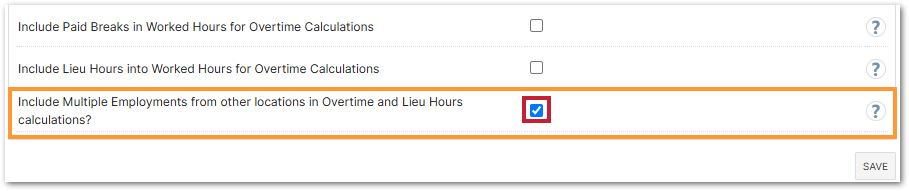 - Locate the Include Multiple Employments from other locations in Overtime and Lieu Hours calculations? setting, and enable if required: