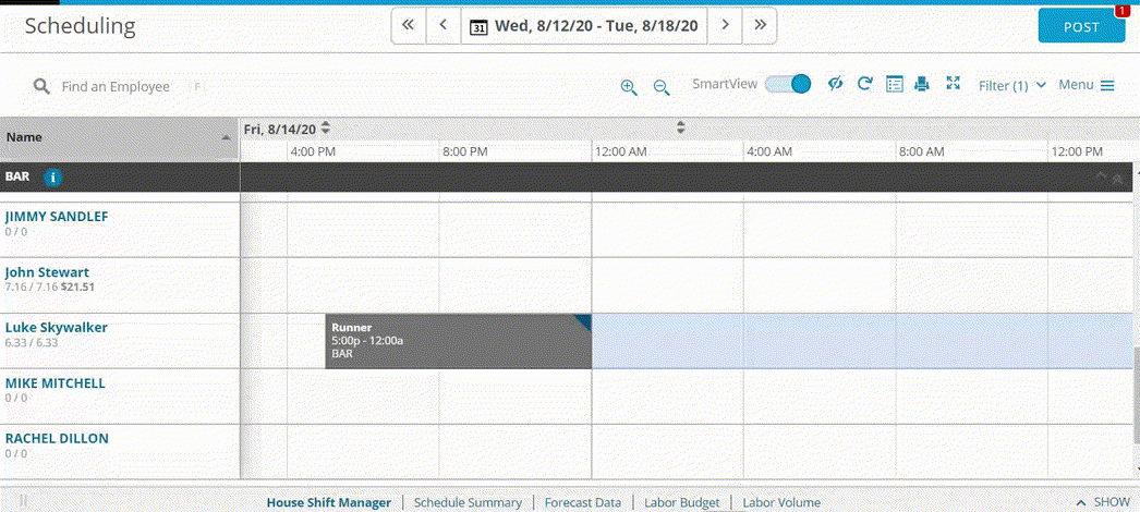 - You can also drag and drop within SmartView. Click and drag the ends of shifts to make them longer or shorter.