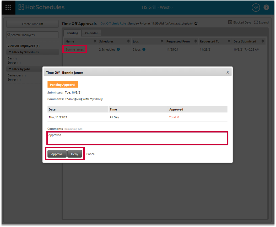 Fig.5 - Approving or Denying Time Off