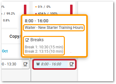 Information on breaks will also be displayed, and if the shift has any notes, they will also be shown.