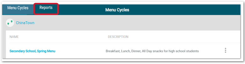 After selecting this tab, a new screen will be displayed. The new Reports screen allows the input of mandatory report parameters, i.e. date range and menu cycles.