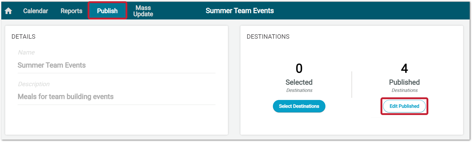 - A ‘mix’ of ‘extended end date’ and ‘unpublish’ actions are possible in the ‘Edit Published’ pop-up as long as the different actions are specified for different locations