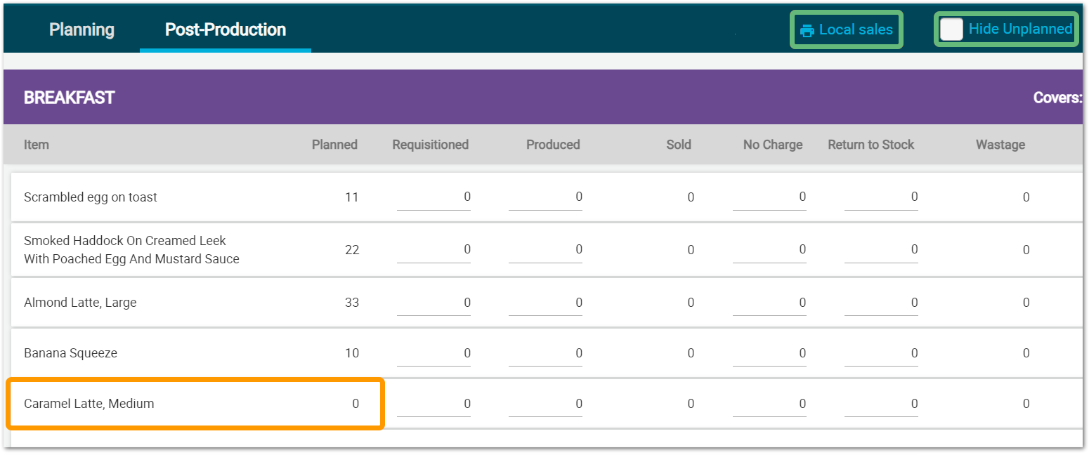 - Then, if running the Local sales report from this screen, the same unplanned items will not be included in it
