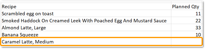 - Buffet menus, planned quantity: For Buffet Menus to be considered as having a planned quantity greater than '0', there must be a value greater than '0' at menu level. Also, if a buffet recipe has a planned quantity of 0, it will not appear on the report unless the Include unplanned items box is ticked.