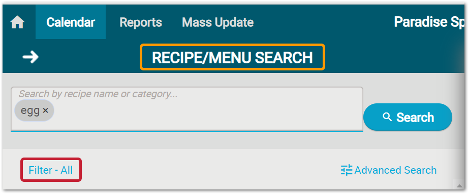 - The search pane name has been changed from ‘Recipe Search’ to ‘Recipe/Menu Search’.