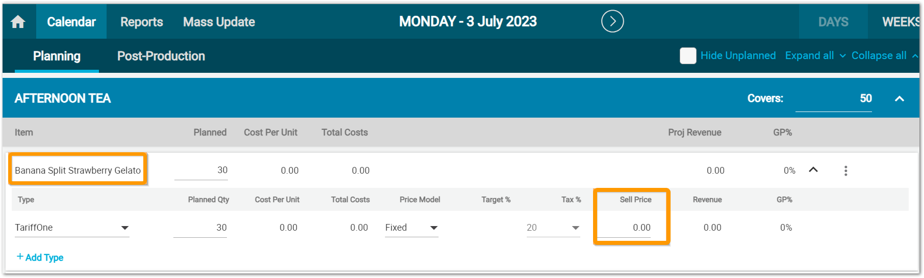 - To not display any items with a 'Planned' quantity of 0, tick Hide Unplanned in the top right corner