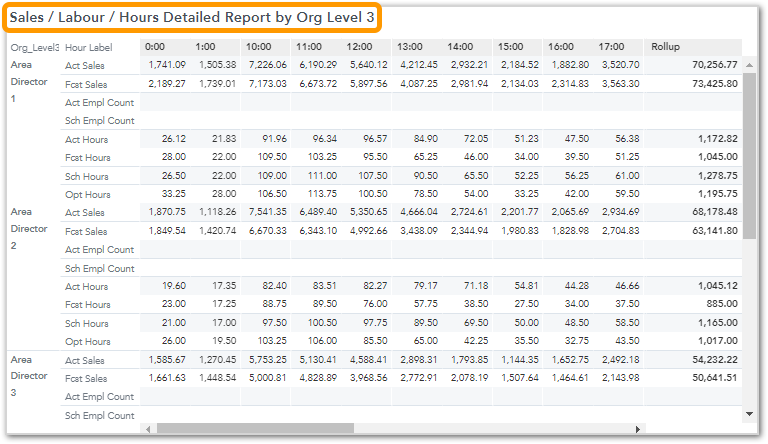 Sales / Labor / Hours Detailed Report by Org Level 3