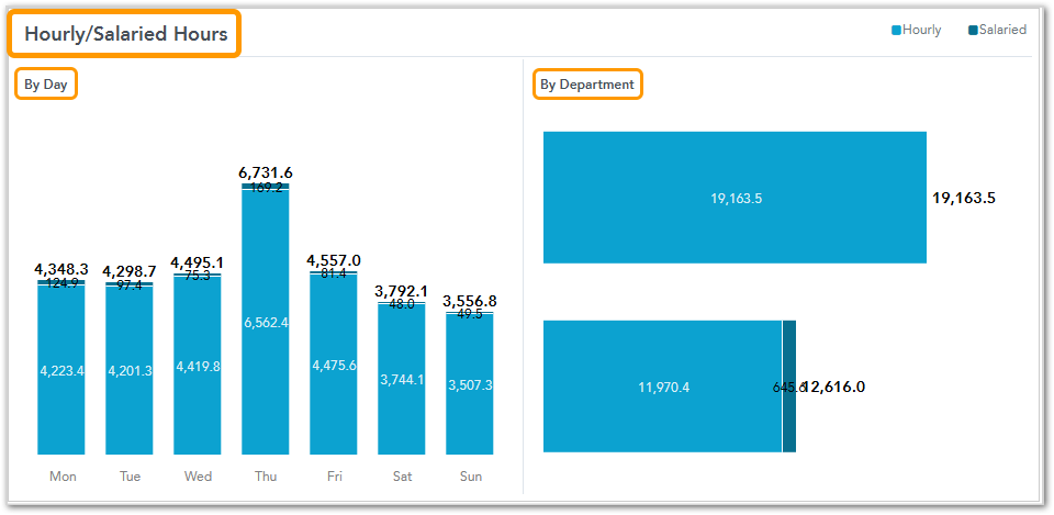 - Hours: Provides total hours worked, categorized by Hourly, Salaried, and Other.