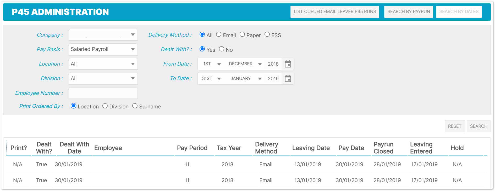 Fig.4 - P45 Administration Search by Payrun - New UI