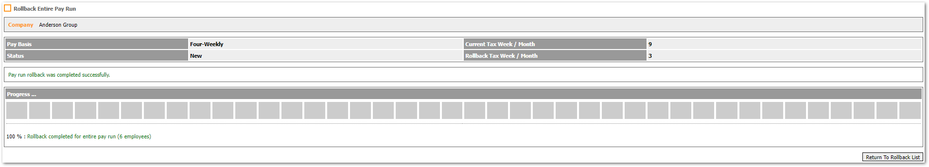 - To access the Rollback Entire Pay Run page, go to Payroll > Pay Runs > Current Pay Run List > Rollback Pay Run > Select Pay Run to Rollback > Rollback Entire Pay Run