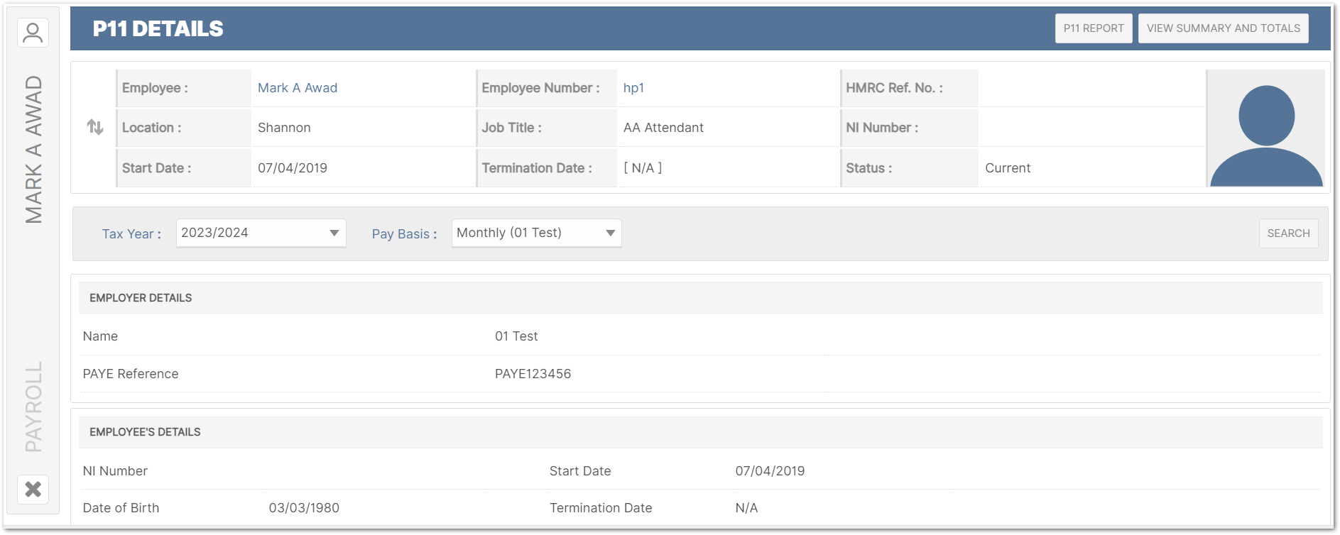 - To access the P11 Details (View Summary and Totals) page, go to Payroll > Employees > Employee List > Select Employee > Employee Payroll Info > P11 Details > View Summary and Totals
