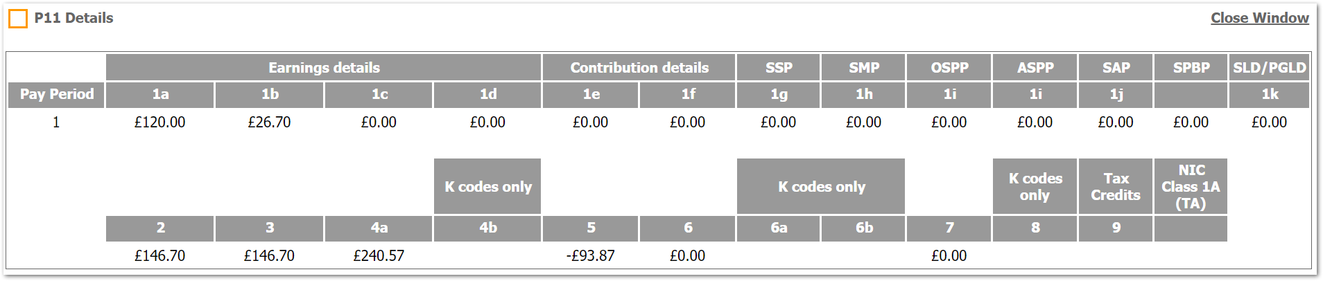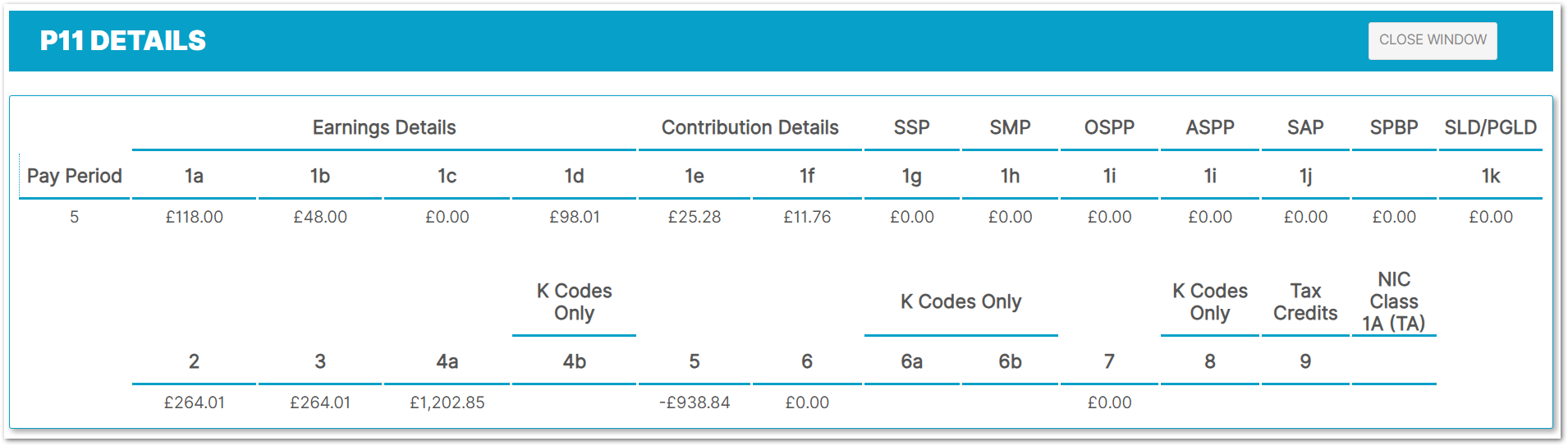 - To access the P11 Details (Individual P11 Row) page, go to Payroll > Employees > Employee List > Select Employee > Employee Payroll Info > P11 Details > Select a P11 Record (Bottom half of the page)