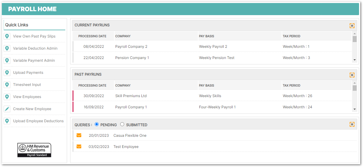 Payroll Module Home Page