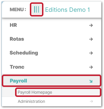 - Use the side menu and go to Payroll > Payroll Homepage