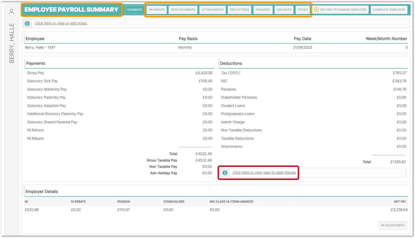- To view the employee year-to-date figures, select Click here to view year to date figures, as shown in Fig.4.