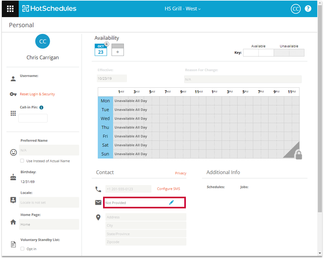 Please note: Once the email has been saved to the HotSchedules account, a confirmation email will be sent out. View this article for more information about confirming email addresses after it has been added to the account: HS: Confirming an Email Address.