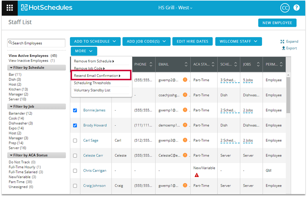 For security purposes, HotSchedules requires that all email addresses saved to user accounts be confirmed. This article covers the process of how to add an email address to accounts for employees and managers. Also covered is how to Resend Email Confirmations.