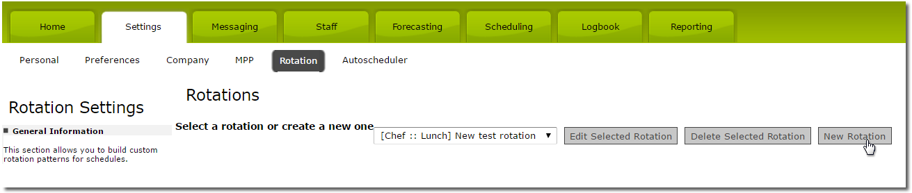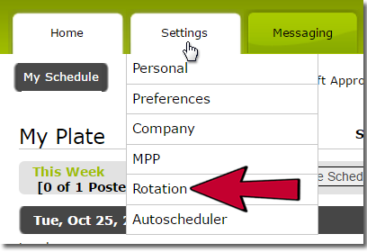 - Log into Hotschedules and go to the settings tab. Select the option that says Rotation.