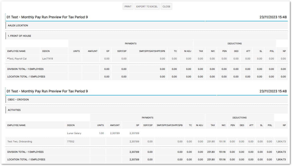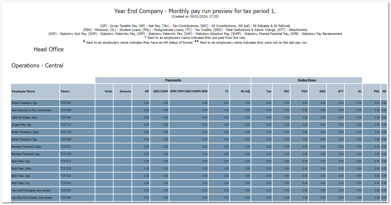 Please note: The employee in this example is excluded due to their earnings being too low.