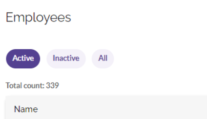 At the top of the employee list, a count of results will be displayed. This count will update as filters are applied.