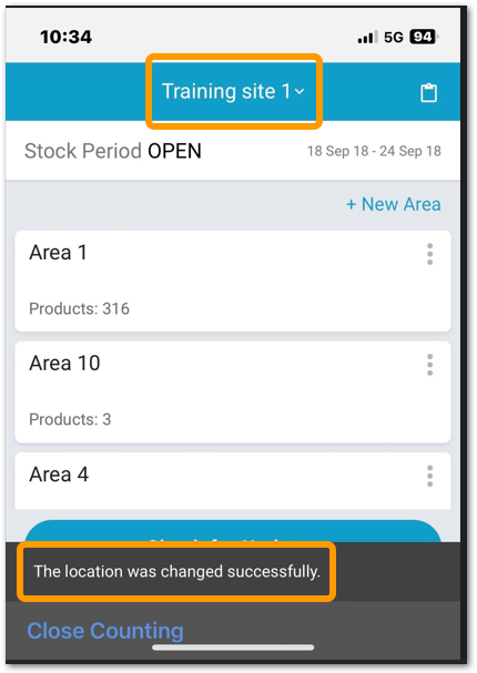 Increases ease of use. Removes the need to close and reopen the Counting app to change Location.