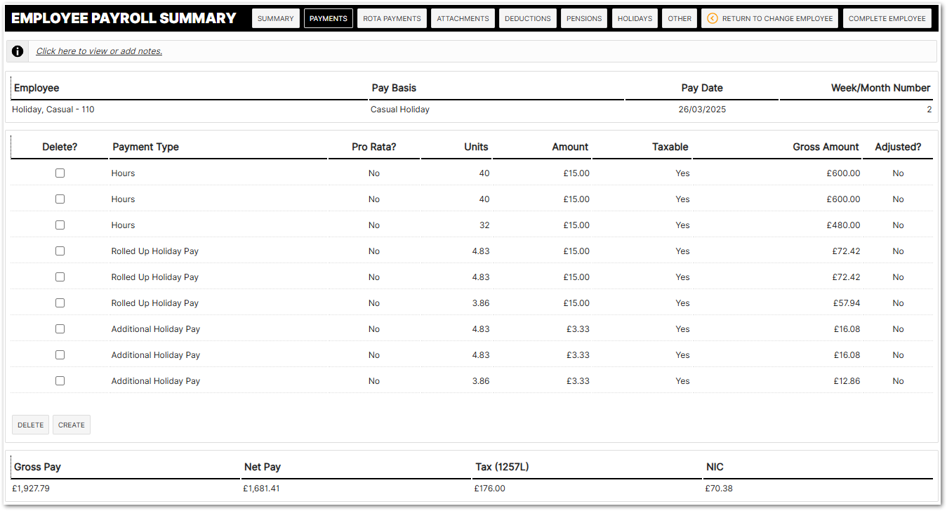 Casual holiday is paid at the employee's hourly rate. As expected, once the holiday has been booked and rota submitted in which that holiday features, it will feed through to payroll to pay: