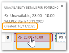 When selecting an unavailability on the schedule, a tooltip shows its date and recurrence. This tooltip will now include the date that the unavailability was requested.