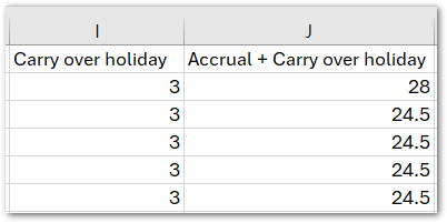 - The 'Accrual' column has been updated to 'Accrual + Carry over holiday' so that carried-over holiday is included in employees' total holiday available to take.
