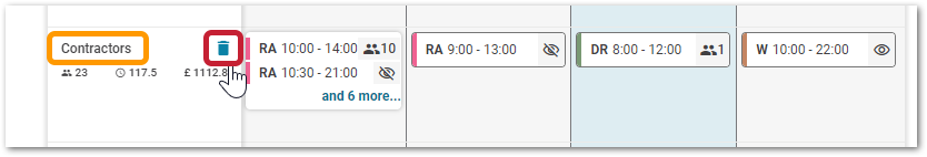On the Scheduling page, on the 'Contractors' row, a new bin icon has been added.