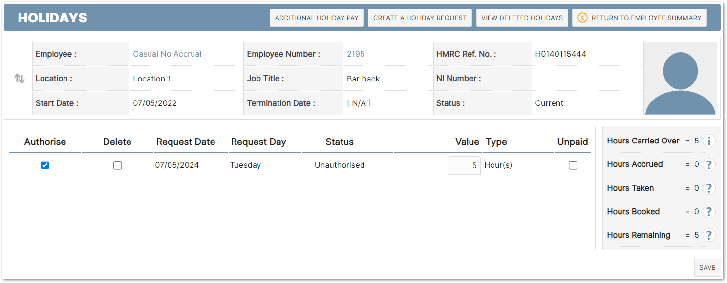 Fig.5 - Authorised holiday, despite no hours accrued