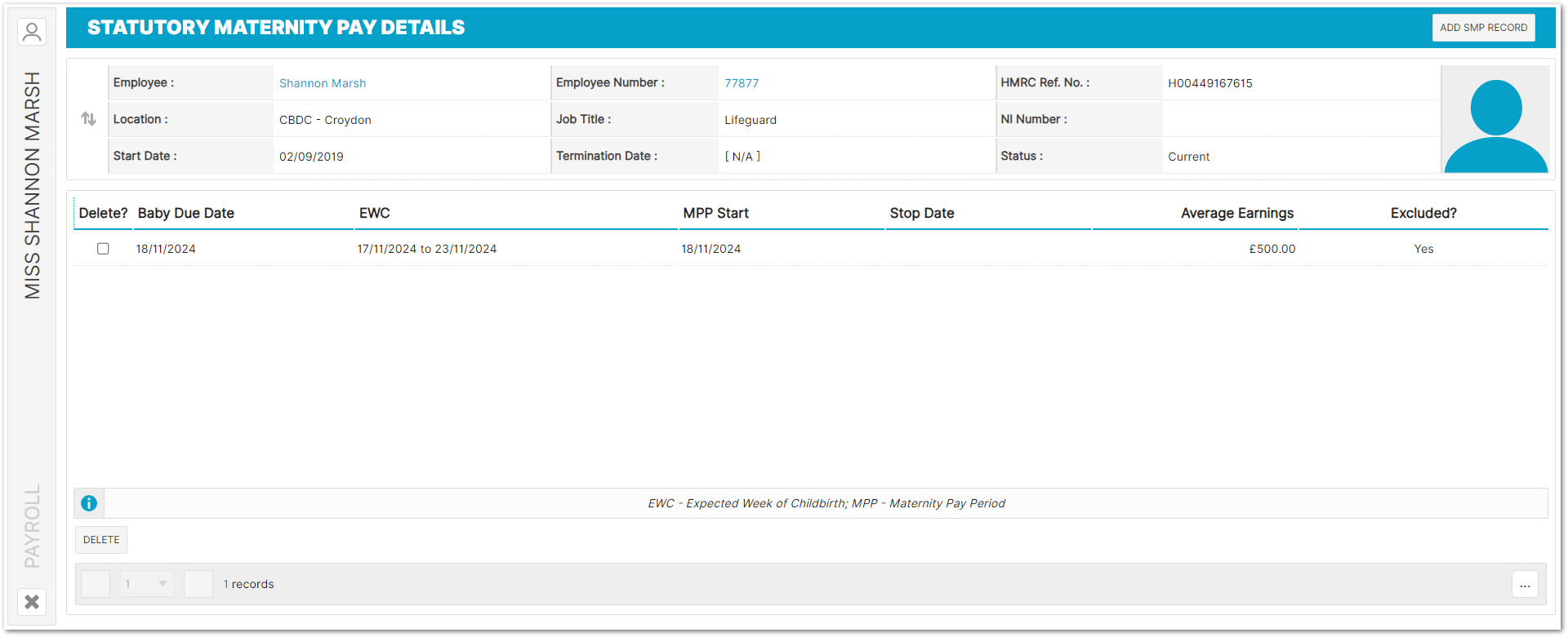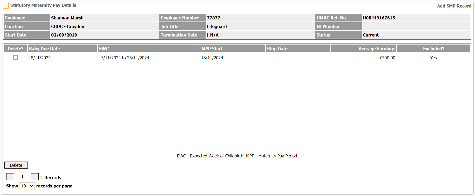 Statutory Maternity Pay - Add SMP Record