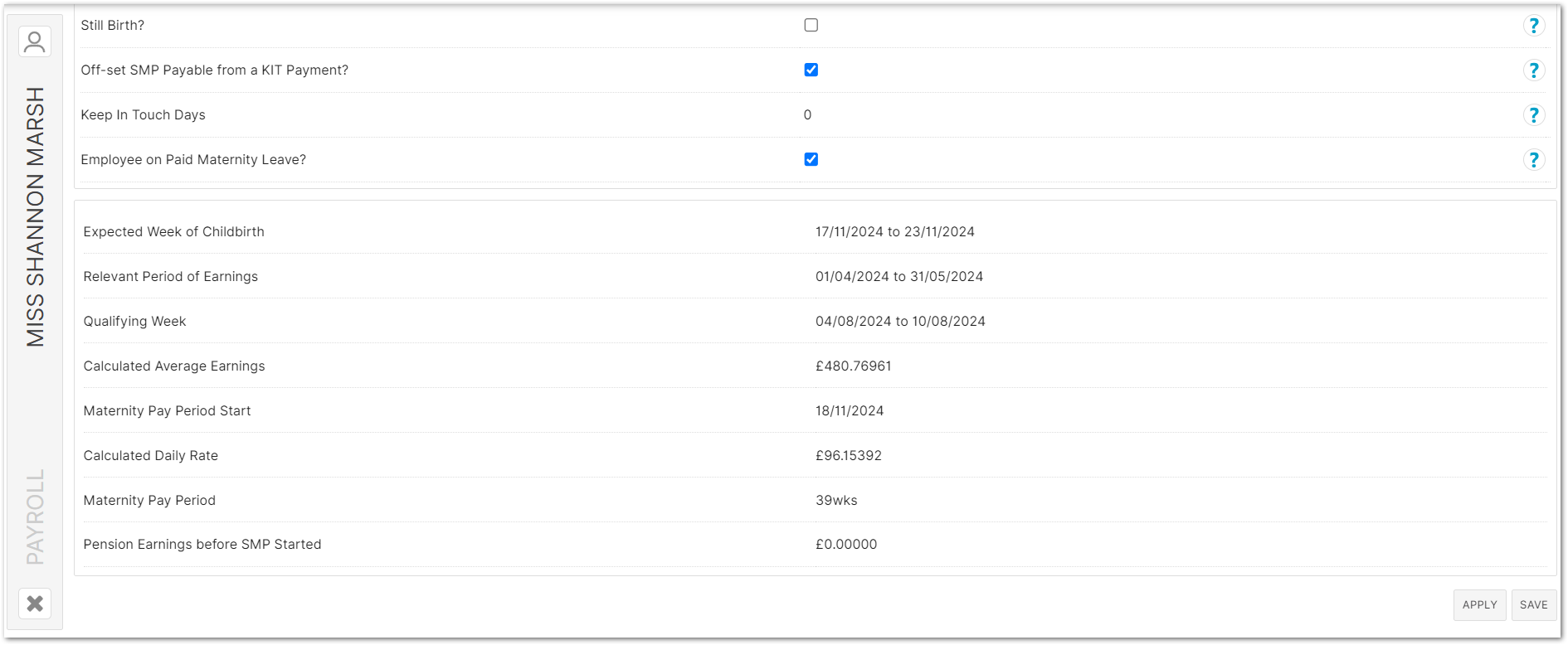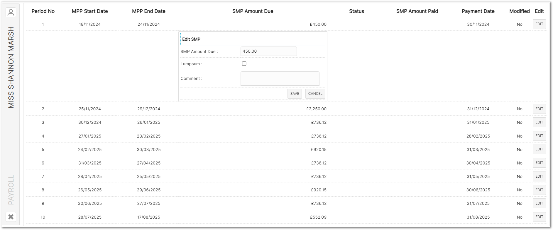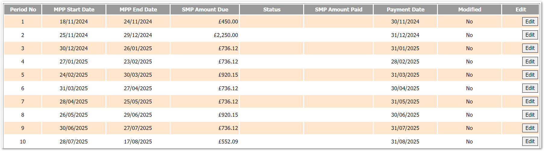 Statutory Maternity Pay - View/Edit SMP Record