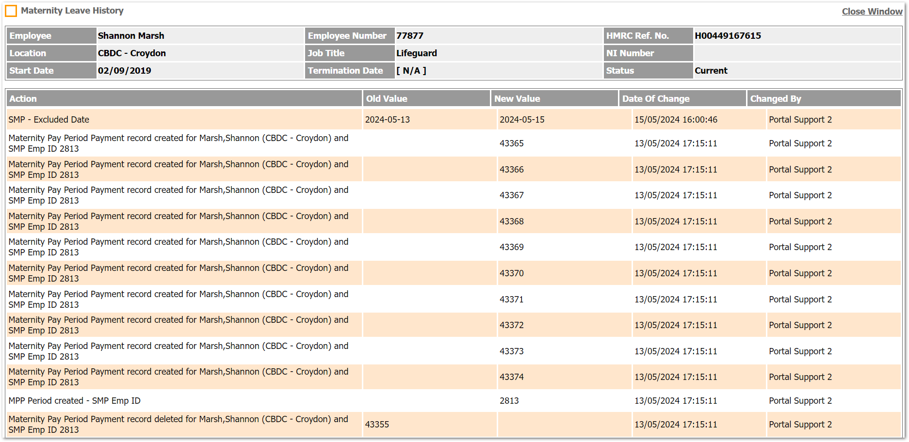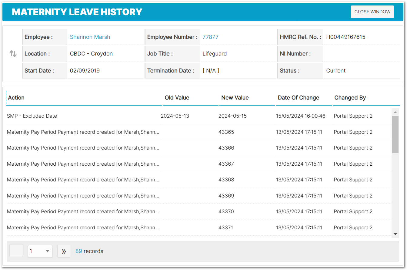 Fig.25 - Statutory Maternity Pay > History - Classic User Interface
