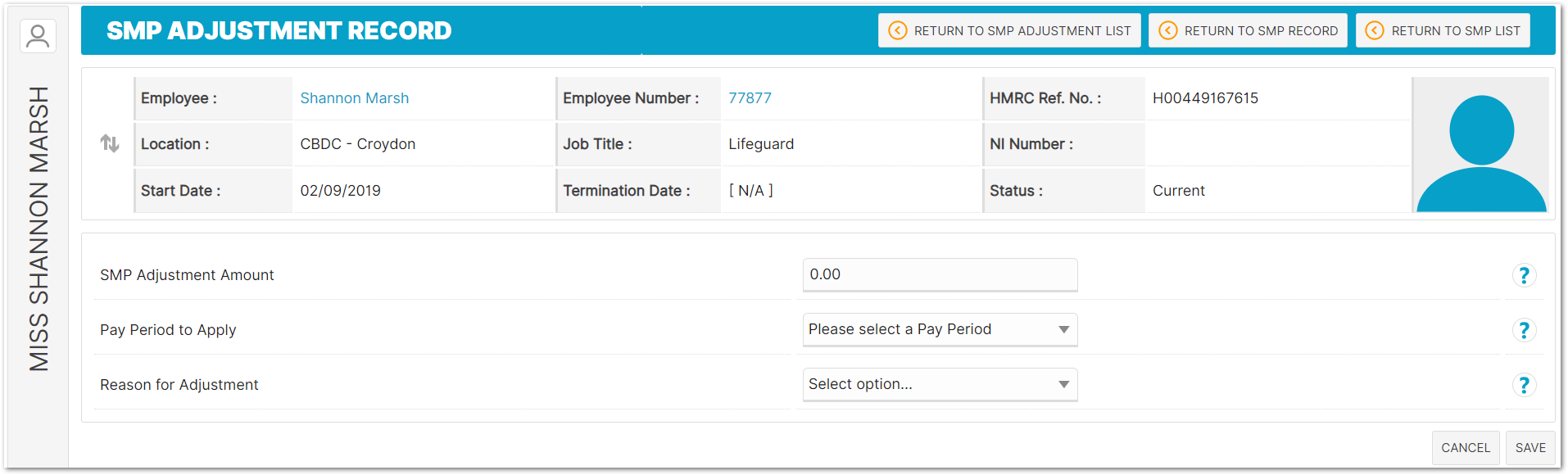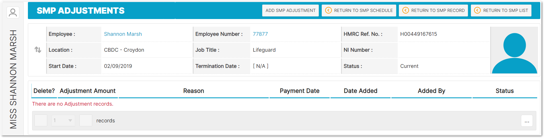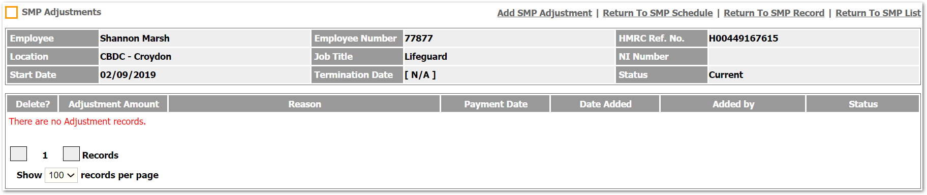 Statutory Maternity Pay - Maternity Pay Schedule > SMP Adjustment > Add SMP Adjustment