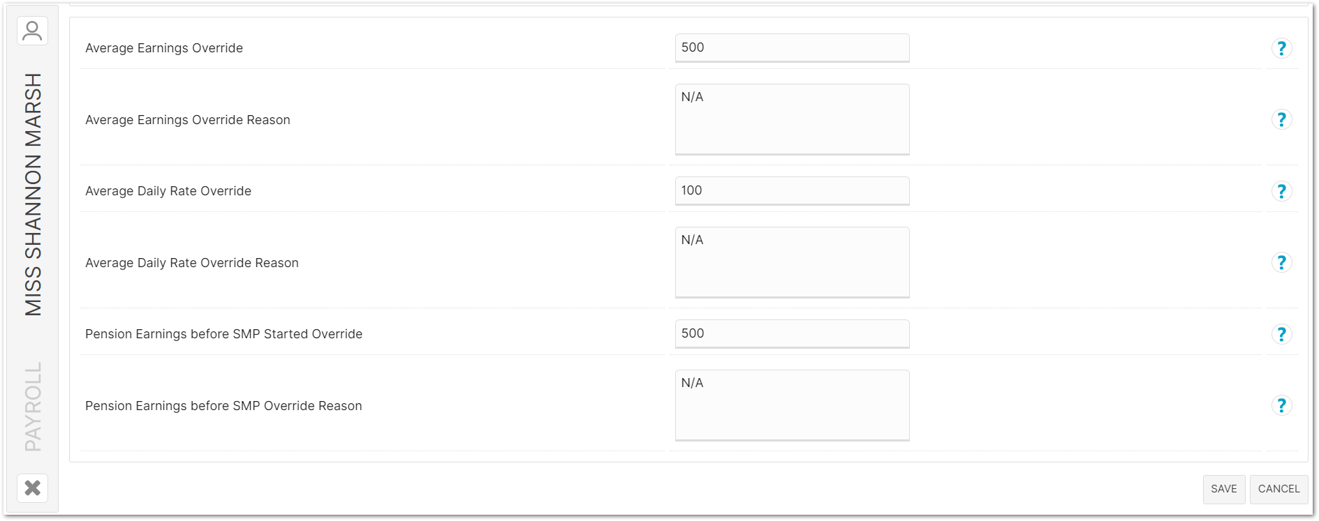 Fig.11 - Statutory Maternity Pay > Override Earnings (Top Half of Page) - New User Interface