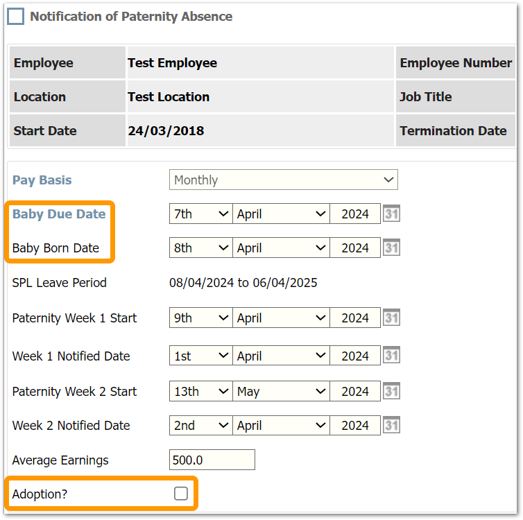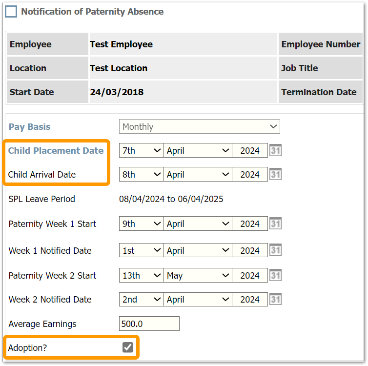Updated Statutory Paternity Fields for Adoption The fields used for 'Baby Born' and 'Baby Due' have been updated to reflect 'Child Placement' and 'Child Arrival' dates for adoption-related paternity leave and pay |