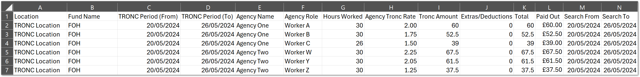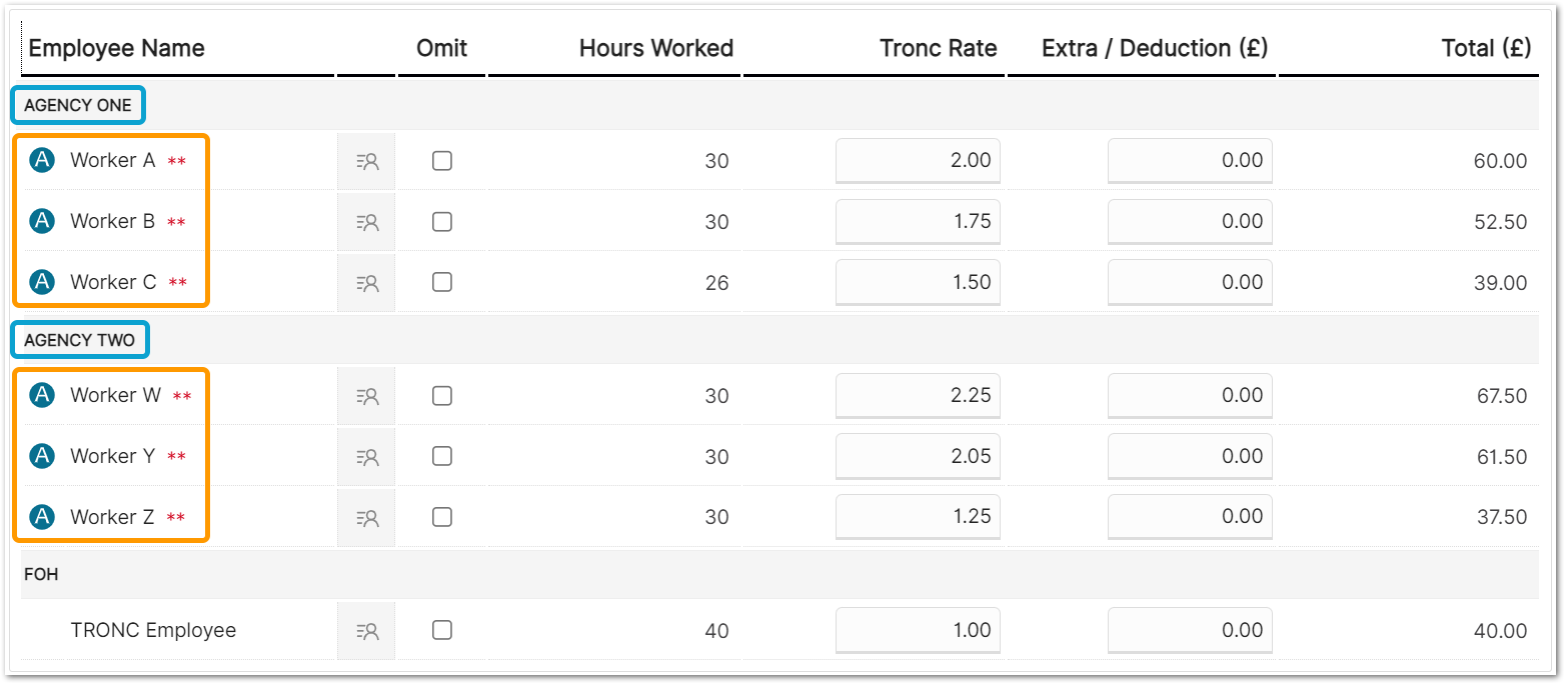 'Hours Worked' data is provided by Scheduling, as well as the Tronc Rate. With this information, the Tronc module operates the same as if the agency worker was a regular employee.