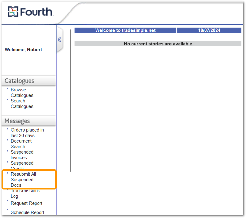 The side menu option Resubmit All Suspended Docs under 'Messaging' is being deprecated and will no longer be available.