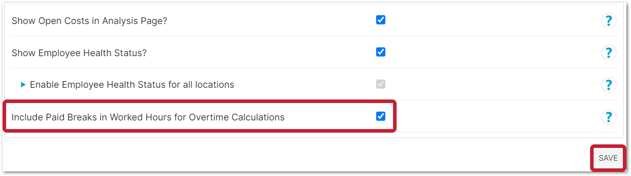 - Tick the box against Include Paid Breaks into Worked Hours for Overtime Calculations