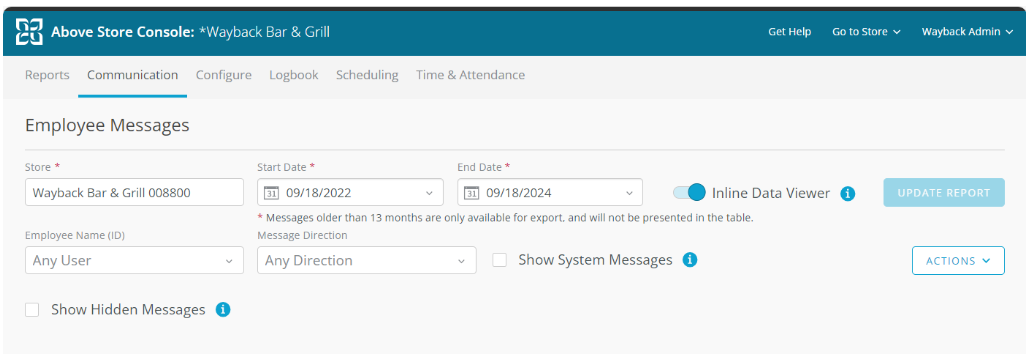 The existing calendar date picker for the ASC HS Message Retrieval has been replaces with separate start and End date fields. Users can now directly input dates or select them from the picker, allowing quicker and more flexible navigation through message history.