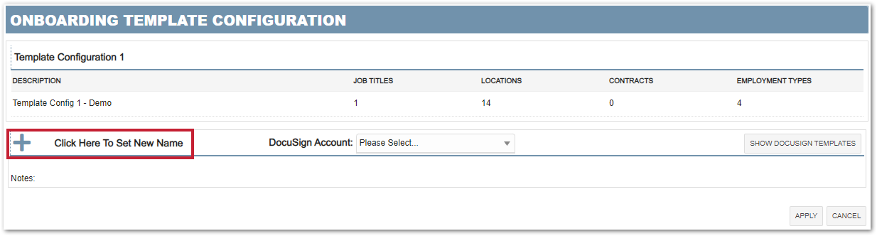 This will open a page where a DocuSign template configuration within the Onboarding configuration can be created.