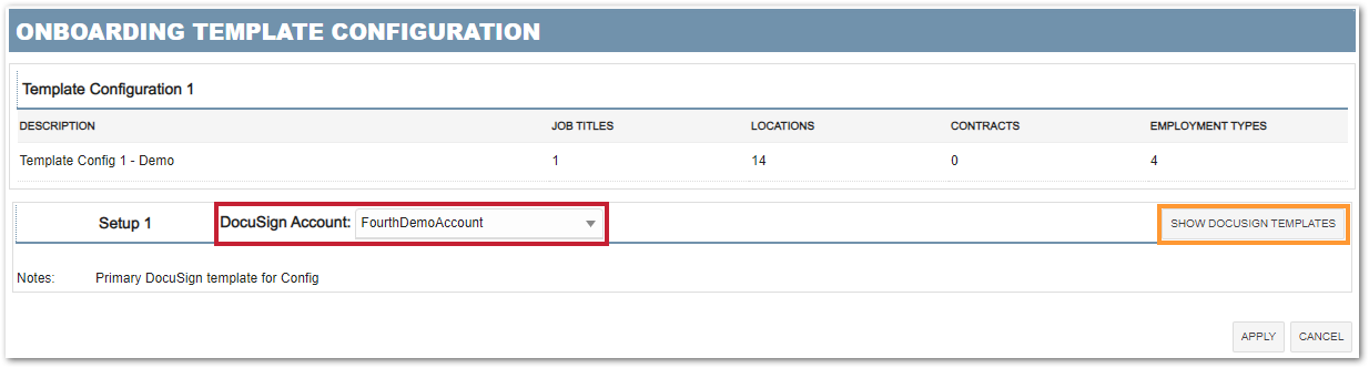 The next step in the configuring a template for Onboarding is to apply the actual DocuSign template.