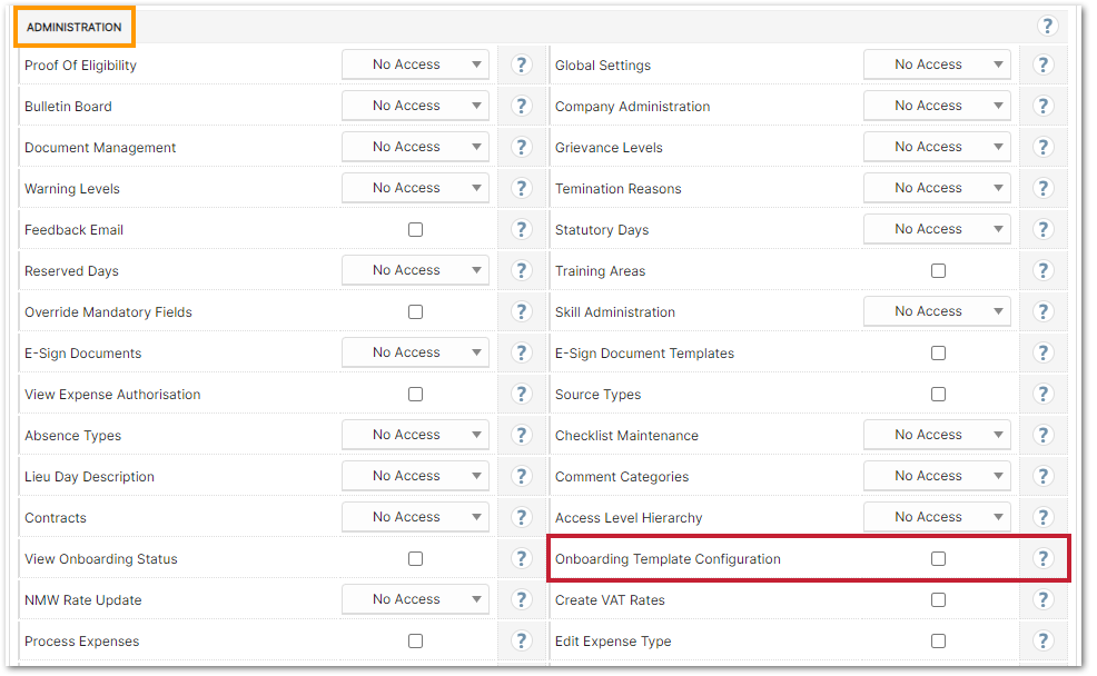 - Under the 'Administration' section, enable (or disable) Onboarding Template Configuration