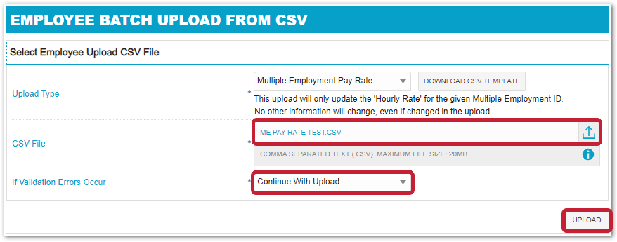 Multiple Employment Pay Rate Batch CSV Upload