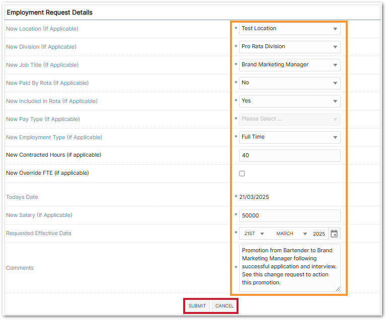 WFM UK | HR UK: Employment Change Request Functionality User Guide