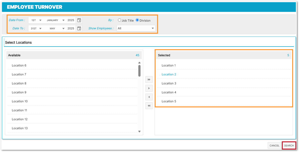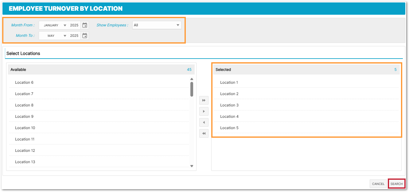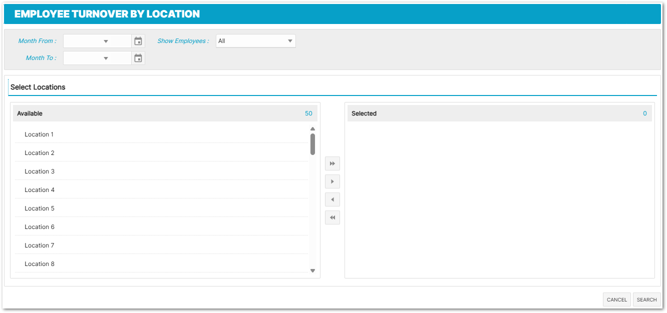 Employee Turnover by Location Report Parameters