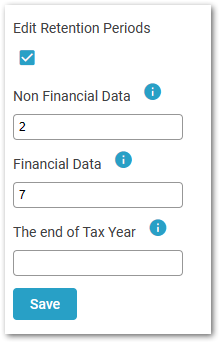 This value denotes how many years after the end of the relevant tax year (see below) in which an employee's termination occurs that their data which is allocated to the Financial Data category will be retained for (rounded up to a calendar month).