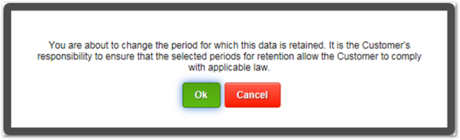 - To apply the Retention Period values entered, select Ok